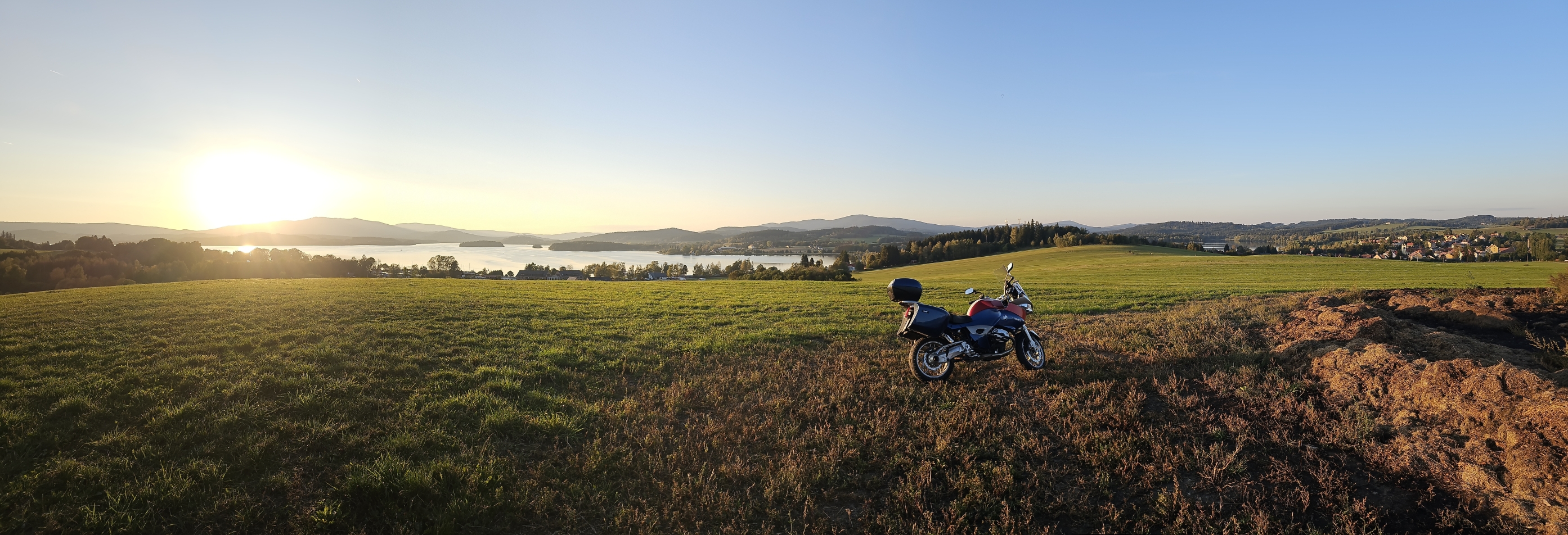 Ráno snadno otřu hmyz z oroseného plexi motorky a jedu k hotelu Racek za ostatními.