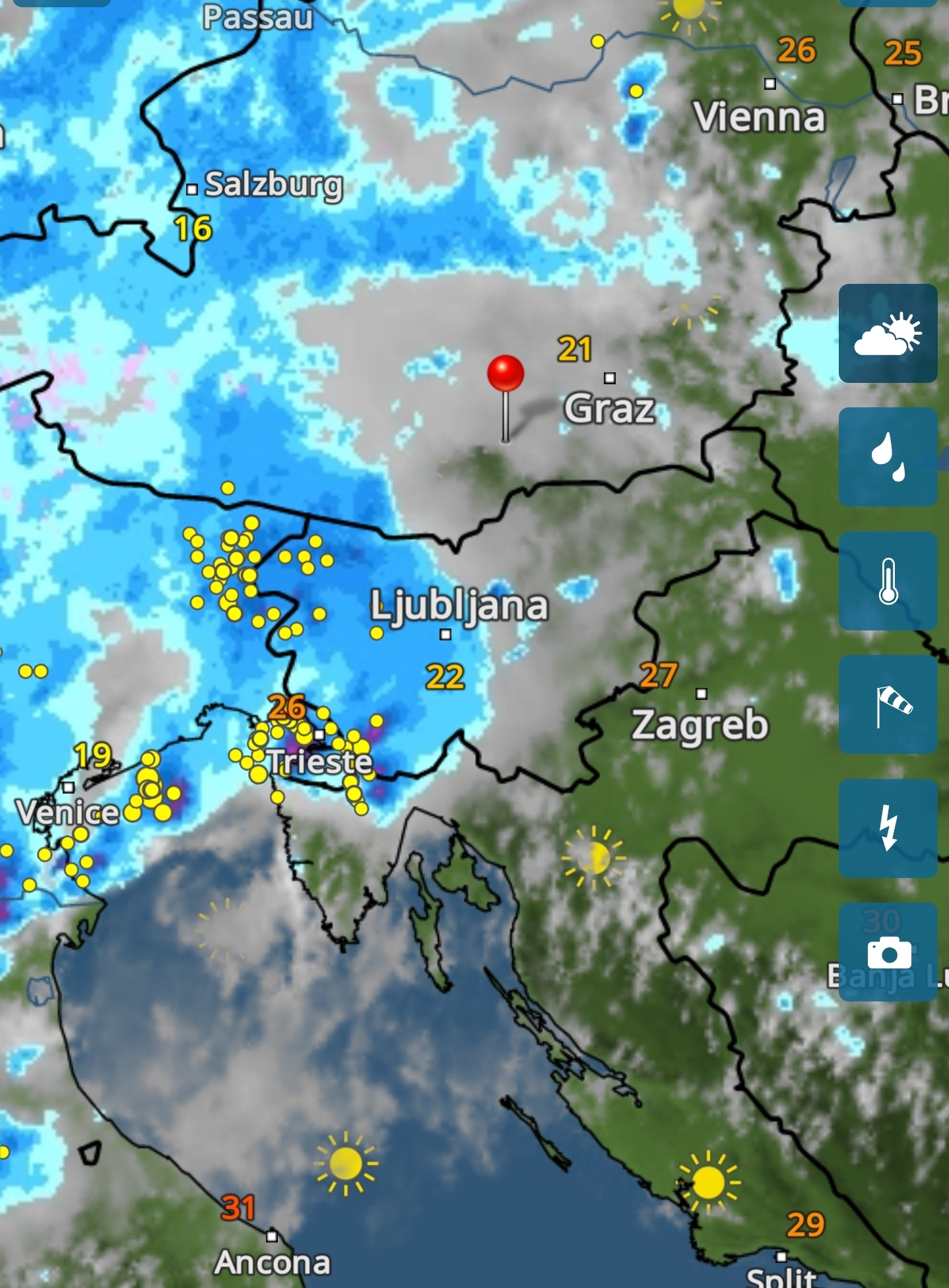 Poslední kapky po sedmé, při výjezdu po osmé už suché fleky a dál na jih sucho úplné, bouřka byla jen místní.