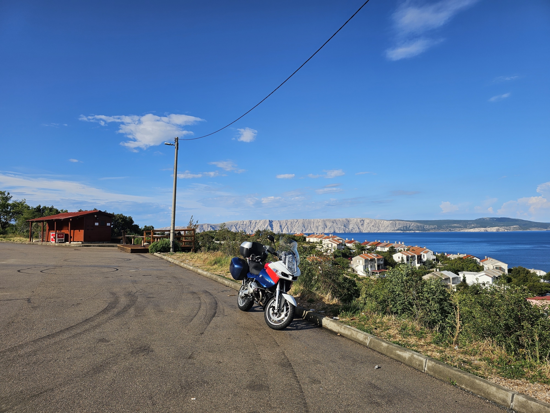 Druhý déšť potkávám těsně za hranicemi ze Slovinska do Chorvatska, jedu v něm 70 km až do booknutého ubytování v Novi Vinodolski.