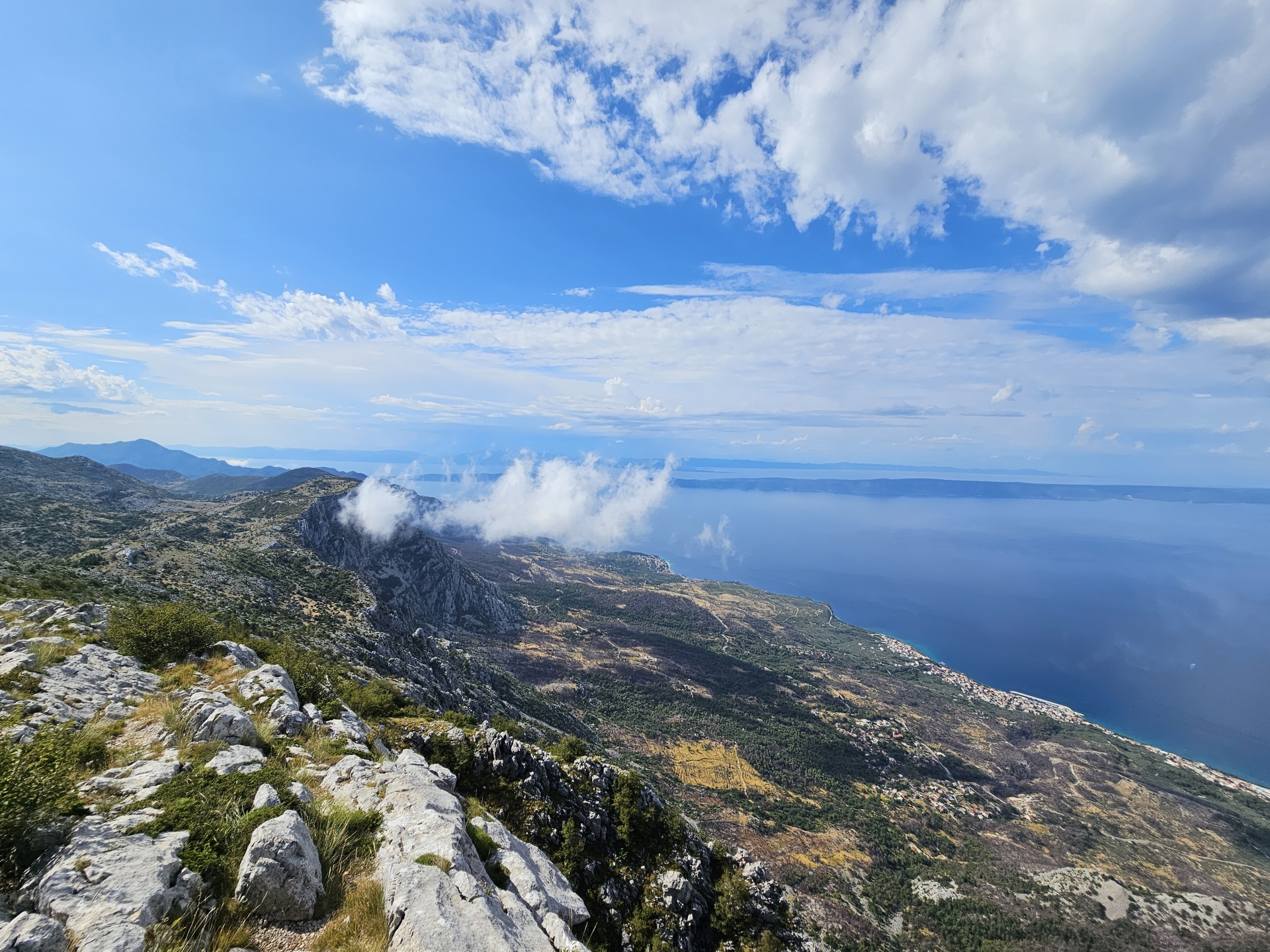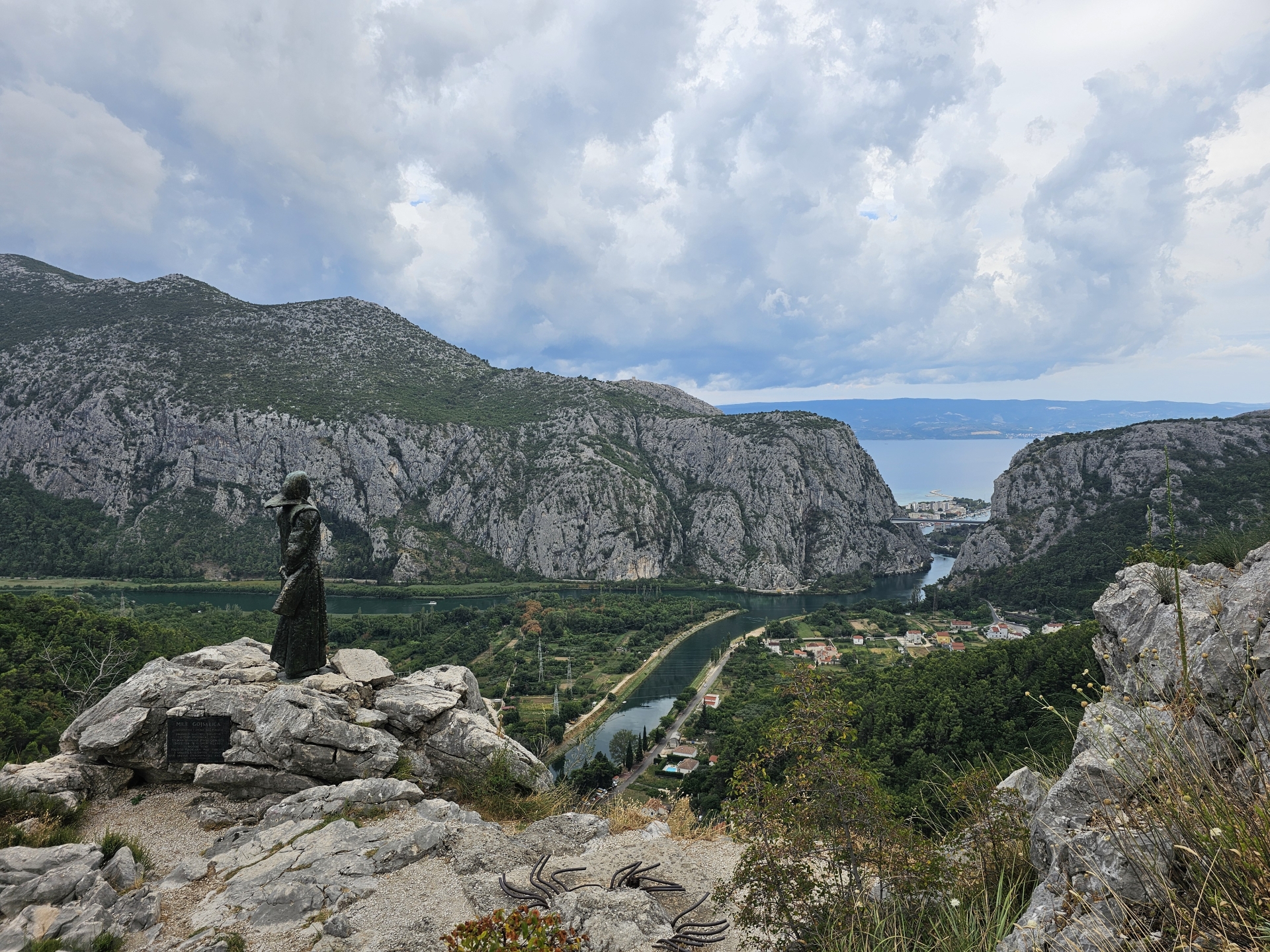 S deštěm to dnes bylo lepší než včera, jednou osvěžující sprška, podruhé s tmavší oblohou kousek za Splitem v gore-texu až k vyhlídce Vrata Omiše,