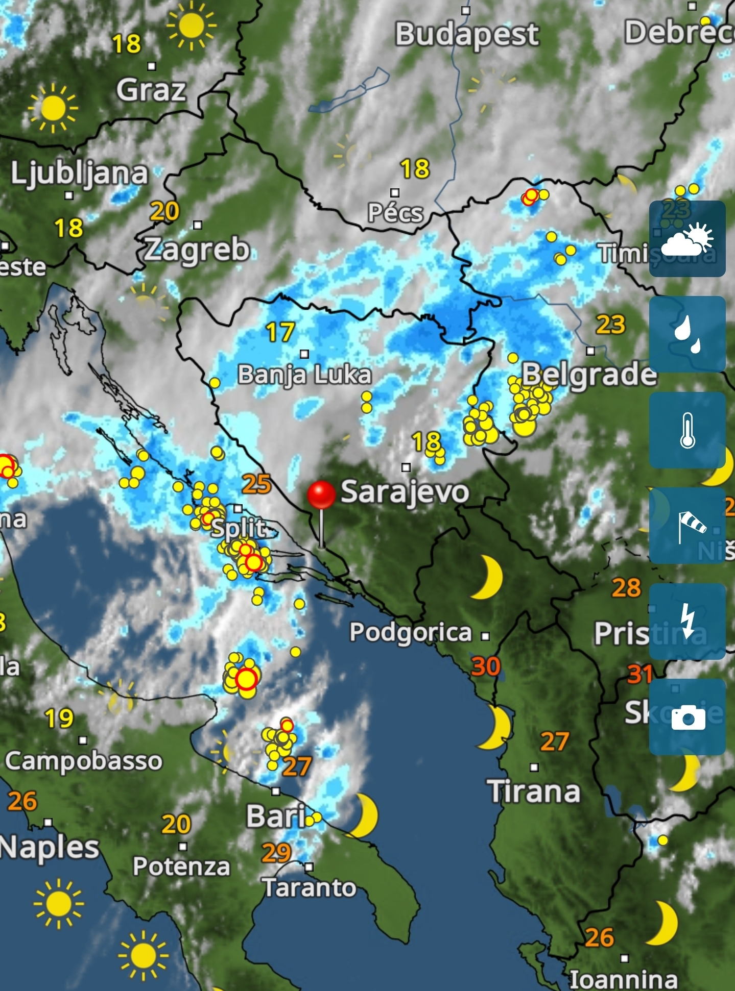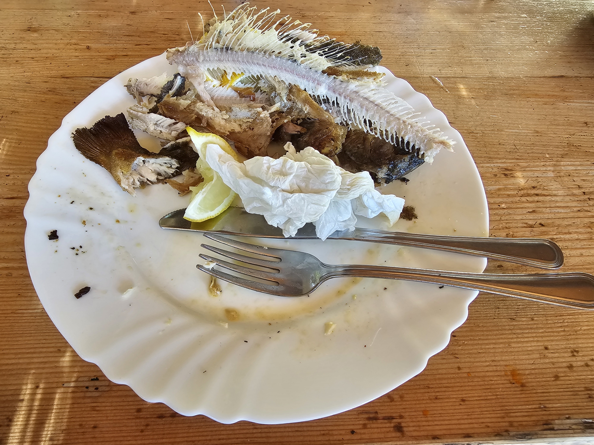 Večer, už byl dopsaný včerejší text, byla veliká kiša, vichr metal vodu vodorovně, nedalo se ani pod pergolou a zahnalo nás to do bezpečí restaurace.