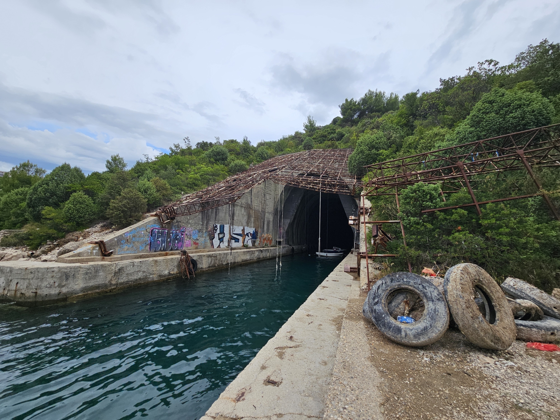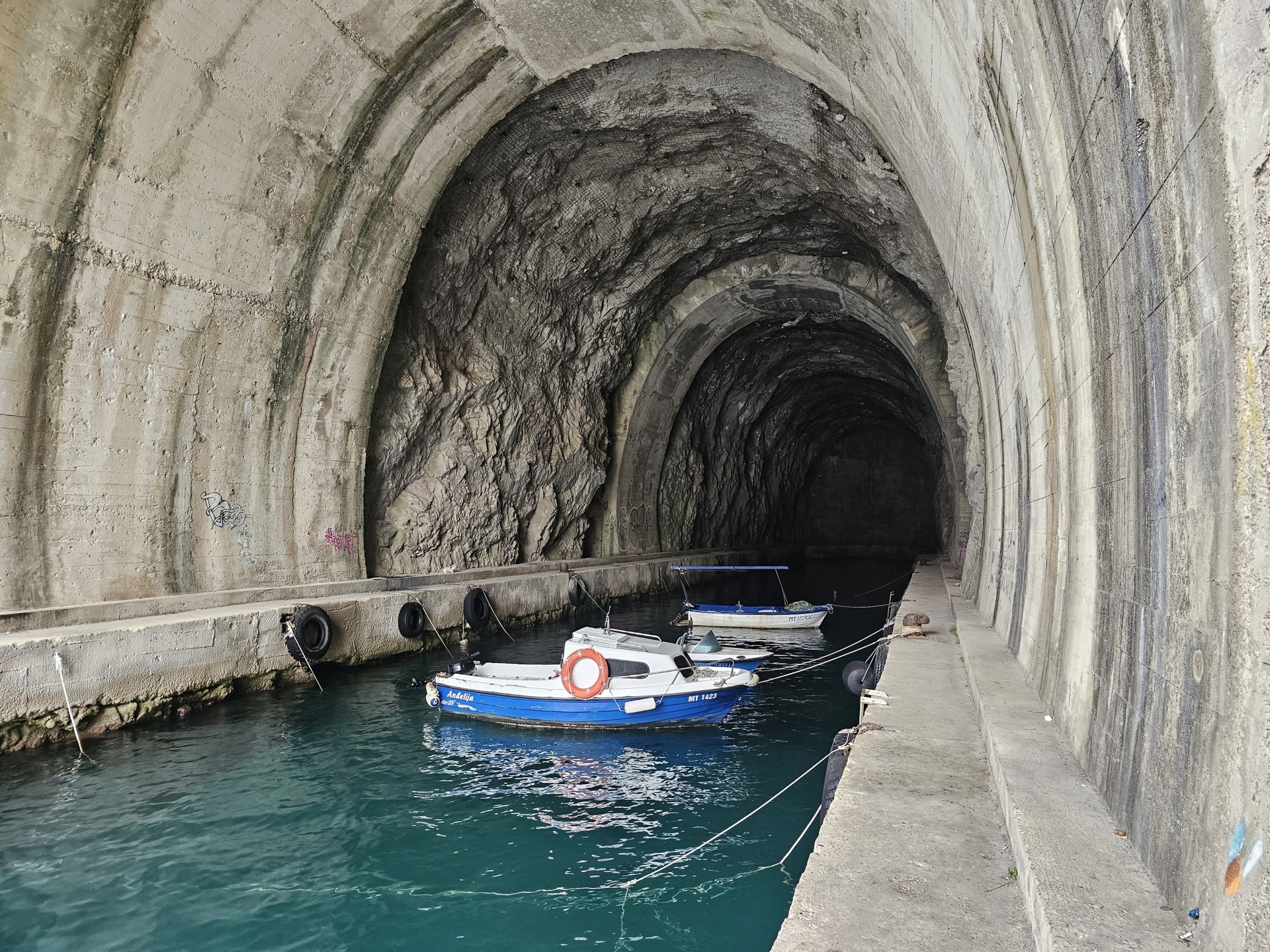 Splněn další úkol, čerstvé fíky snědené během prohlídky bývalého ponorkového bunkru (tunelu) u Pelješki mostu.