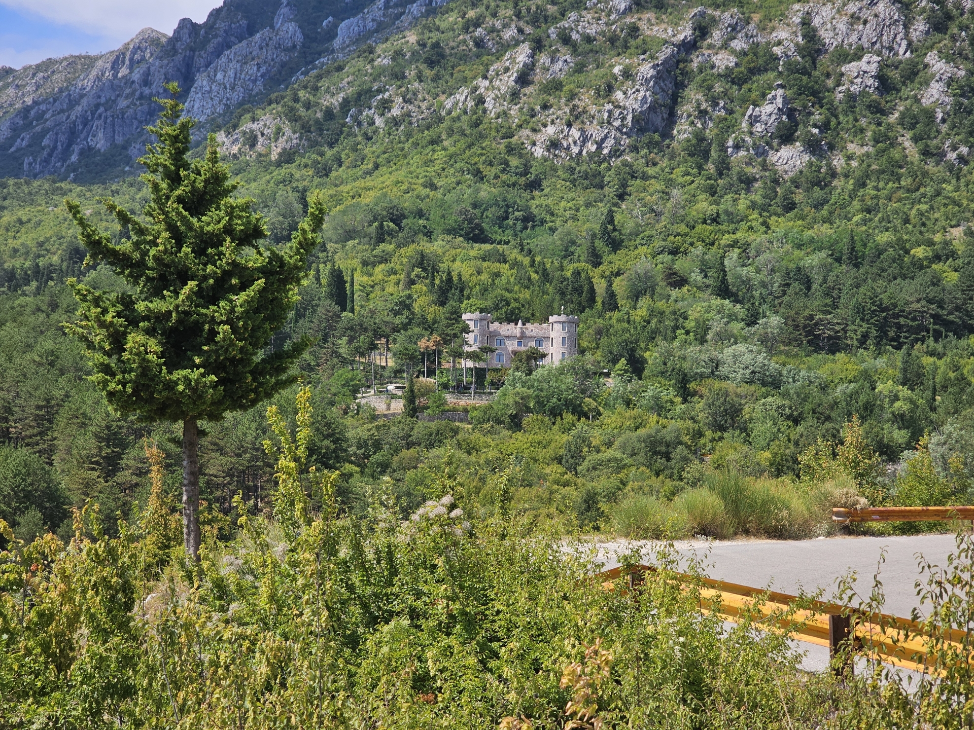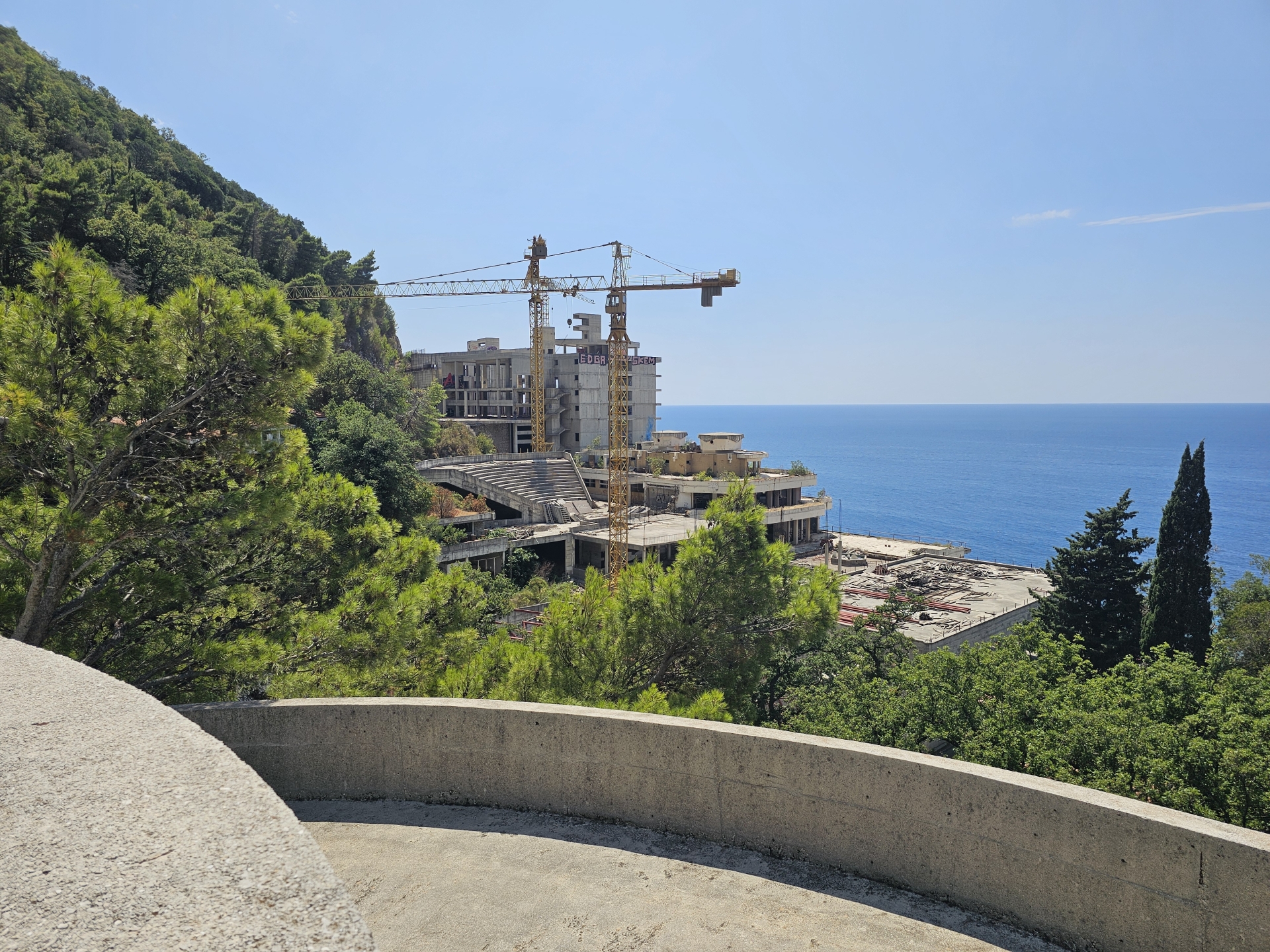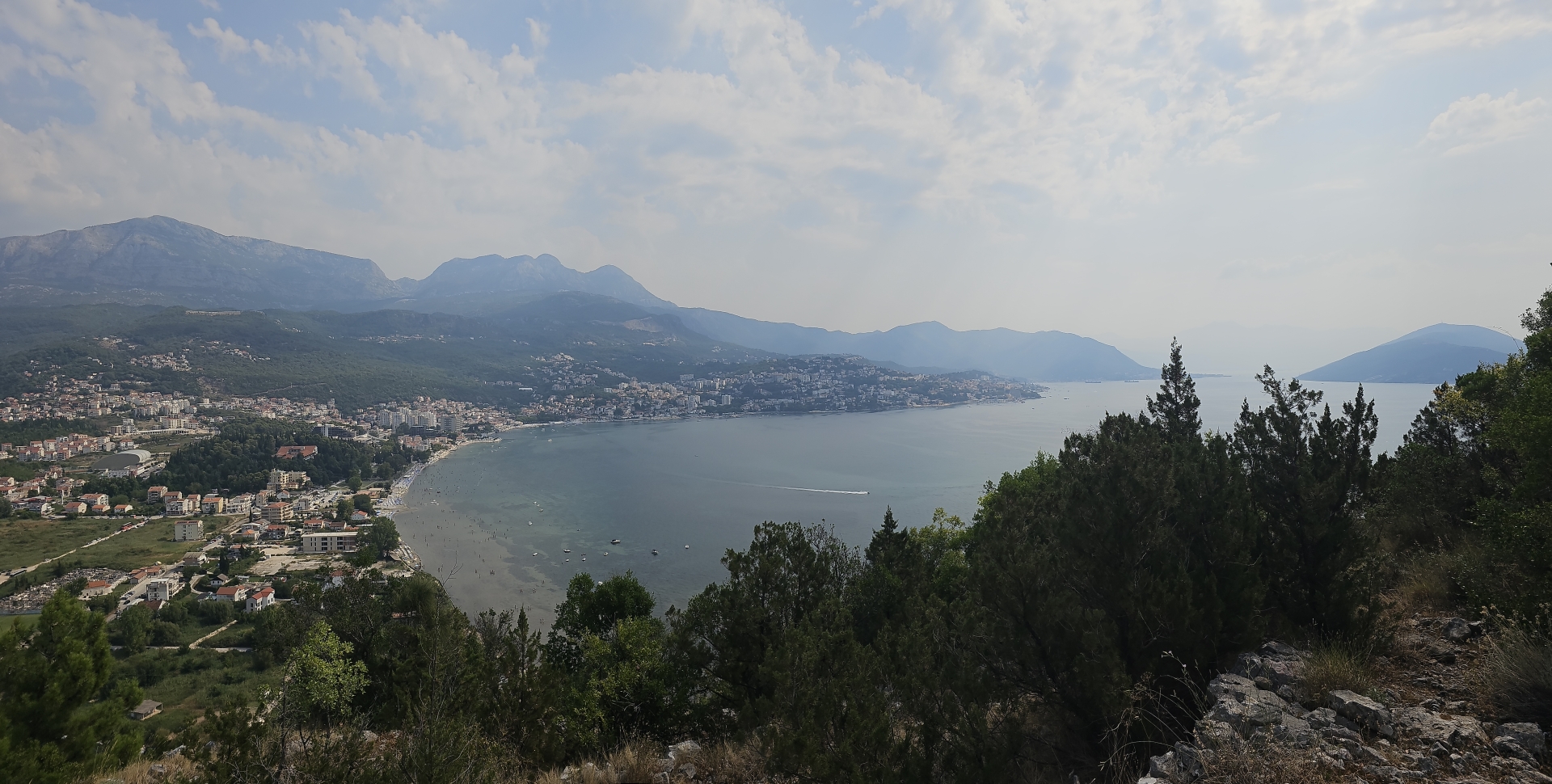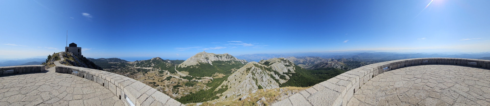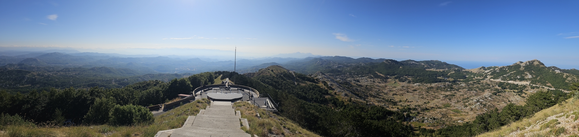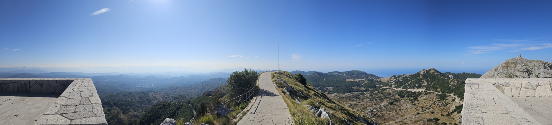 Ráno zpět na vyhlídku na zátoku Kotor, restaurace tu v roce 2018 nestála, jen základová plošina. Konečně mám letní počasí.