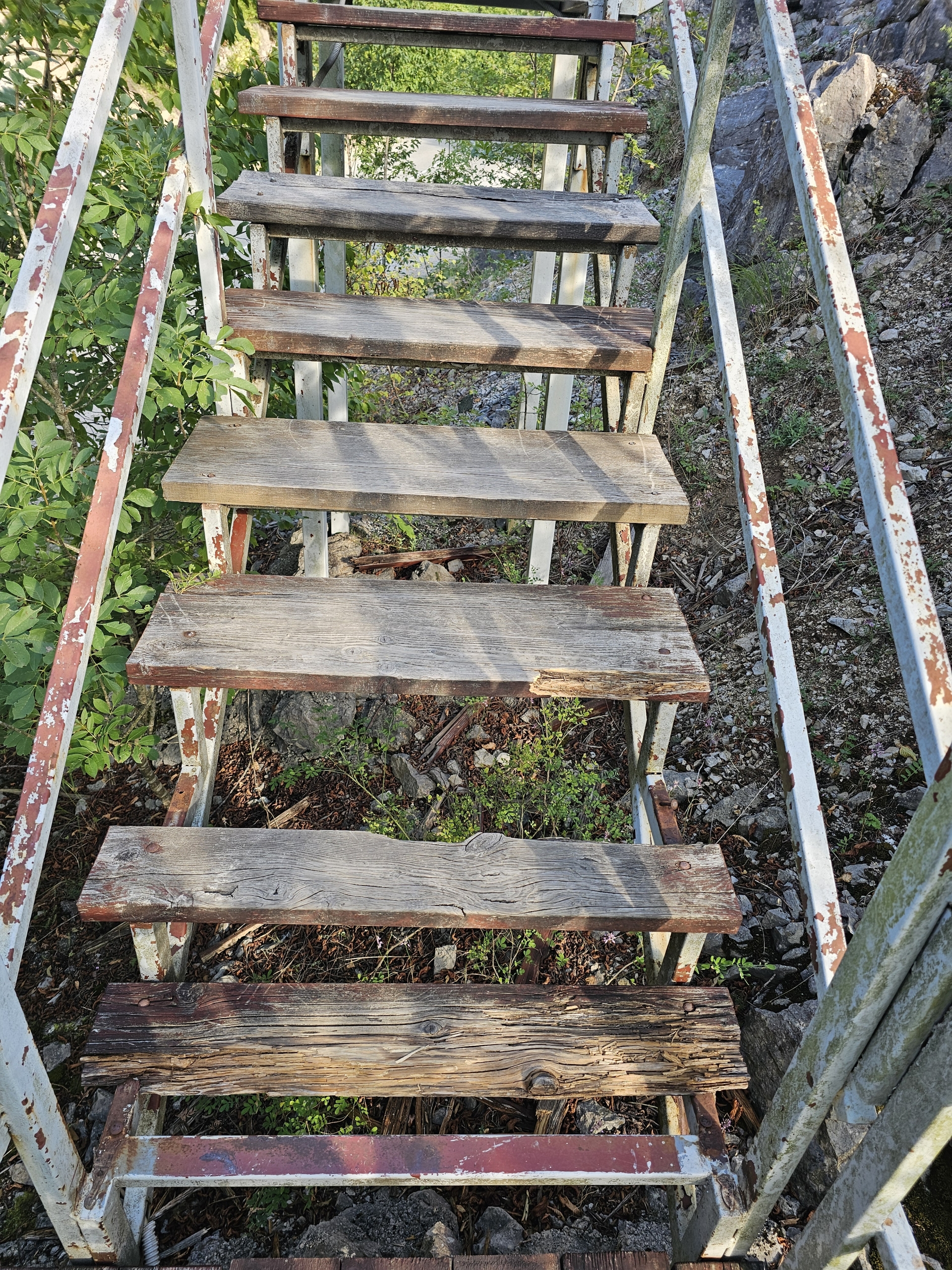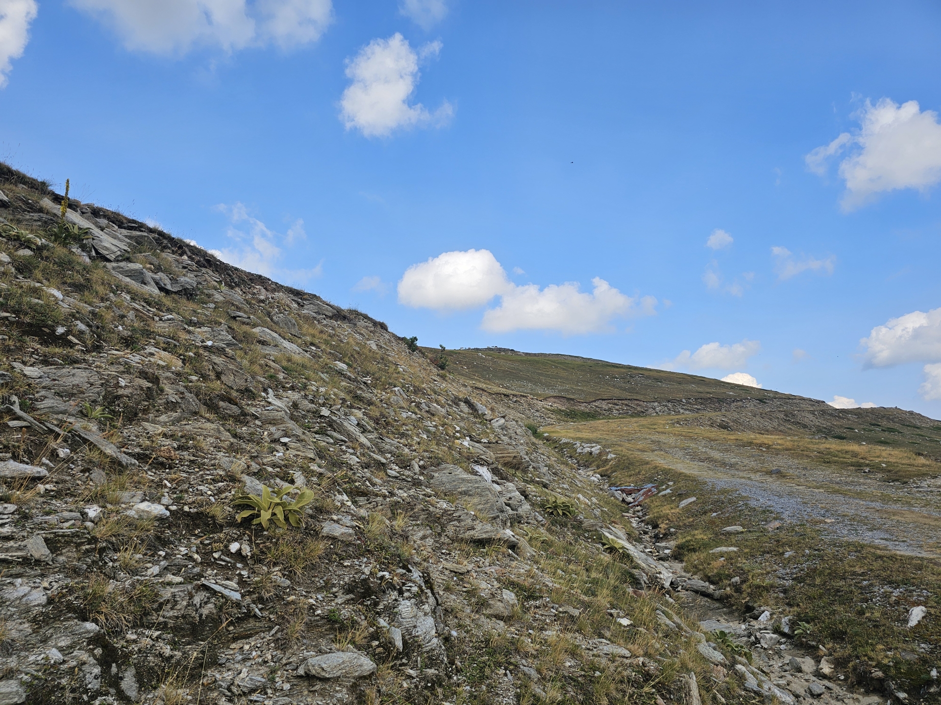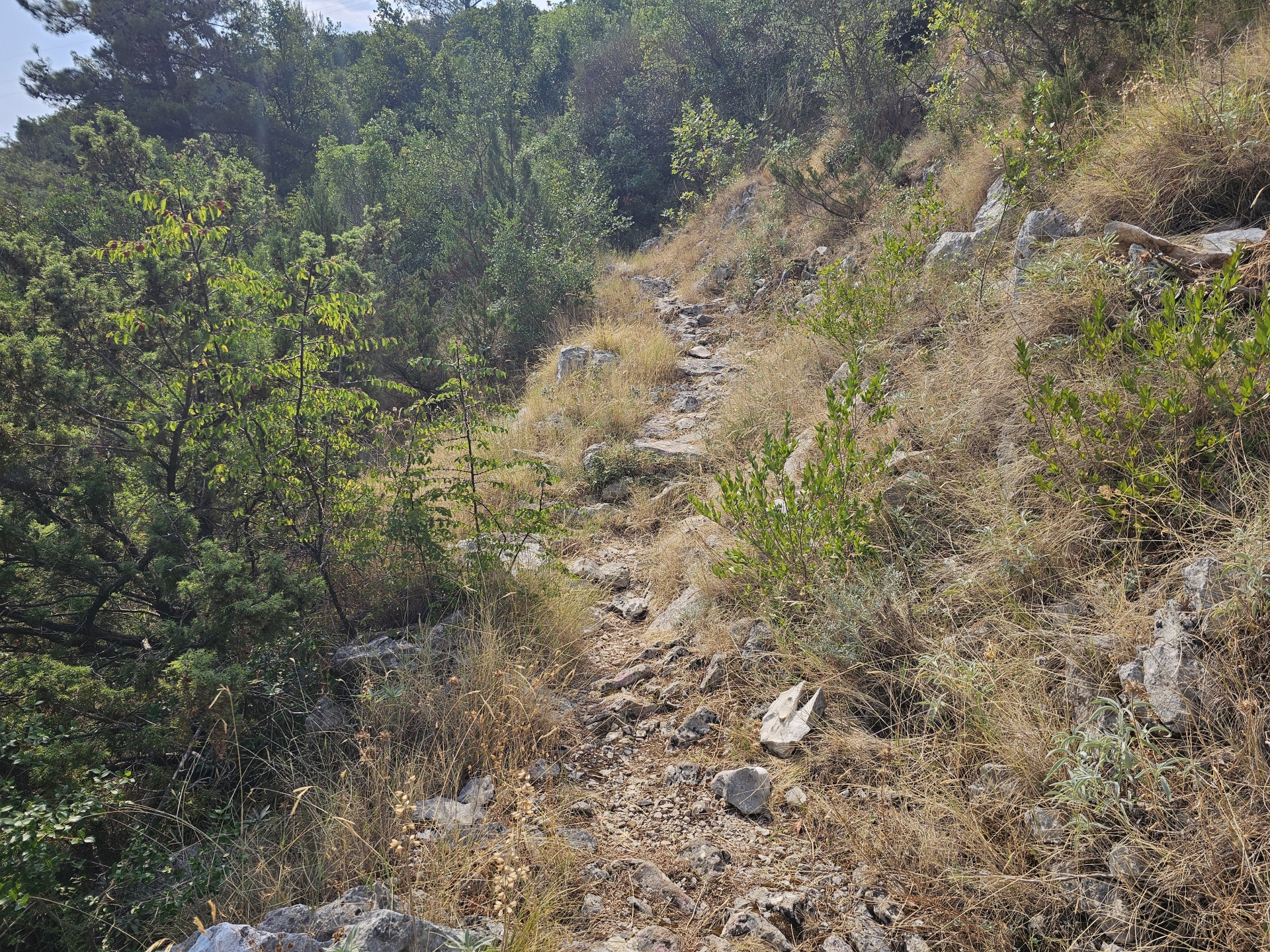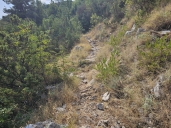 Cesta byla podobně kamenitá a hodně strmá přímo do svahu, jen 8x menší převýšení.