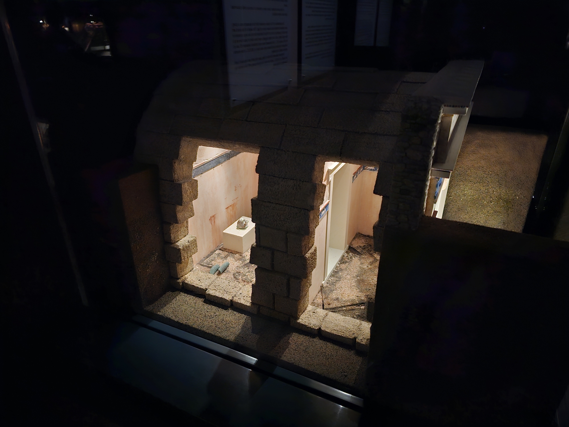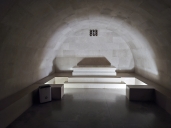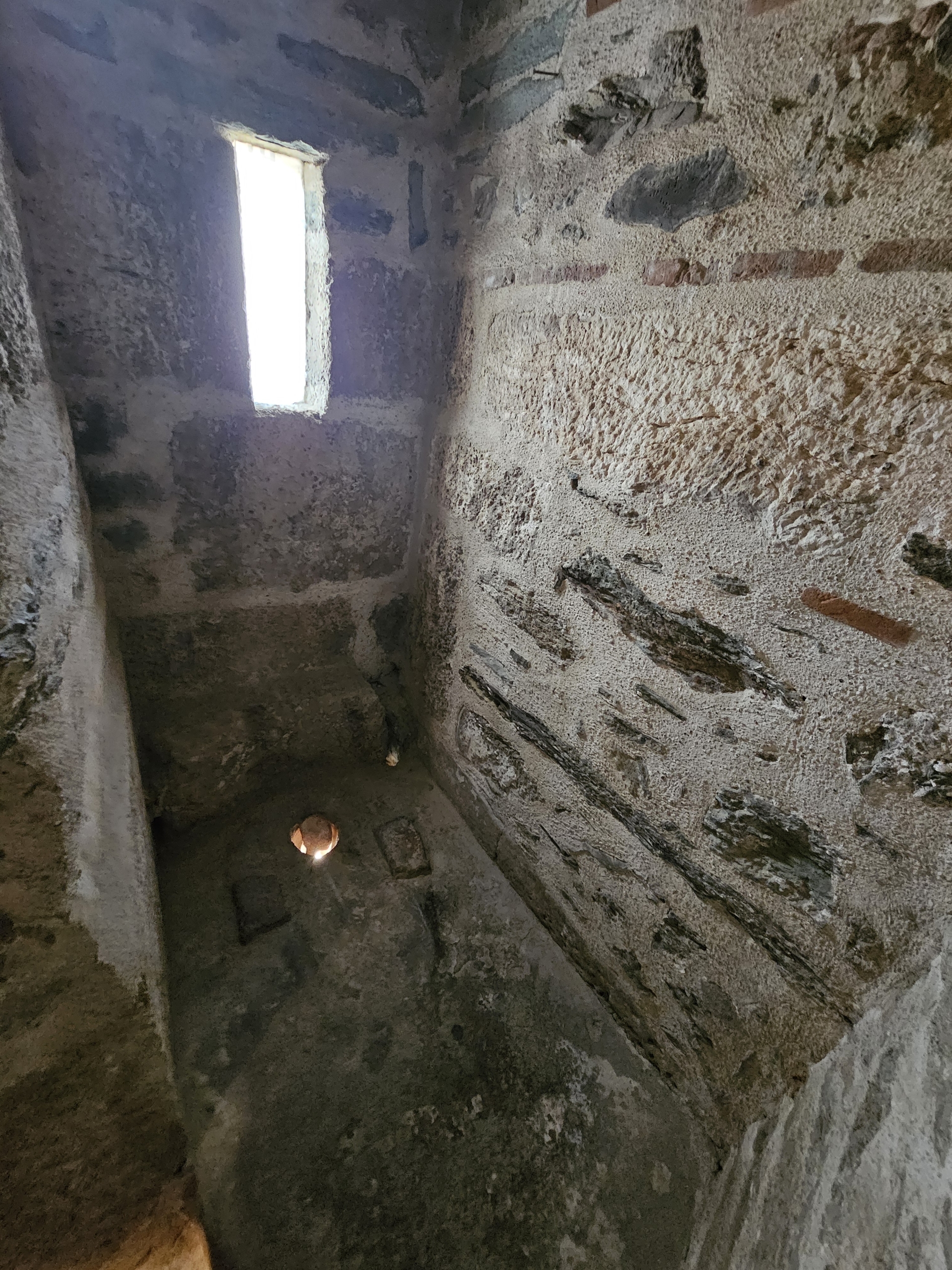 Má klenbové stropy, díra k oknu je spíš tunel ve zdi 80 cm tlusté. Slibovaná WiFi sem nedosáhne, signál mobilní sítě je slabý, jen stáhnu GPX log z navigace a jdu spát.