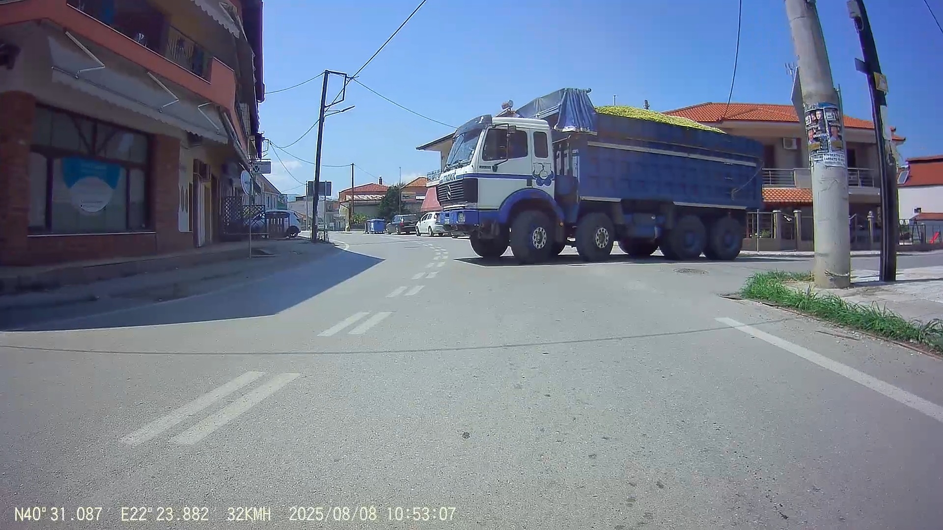 Kolonu drze objedu, první uniformovaný na odbočce z hlavní ulice k celnici cosi brble, dělám že neslyším a pomalu jedu dál.