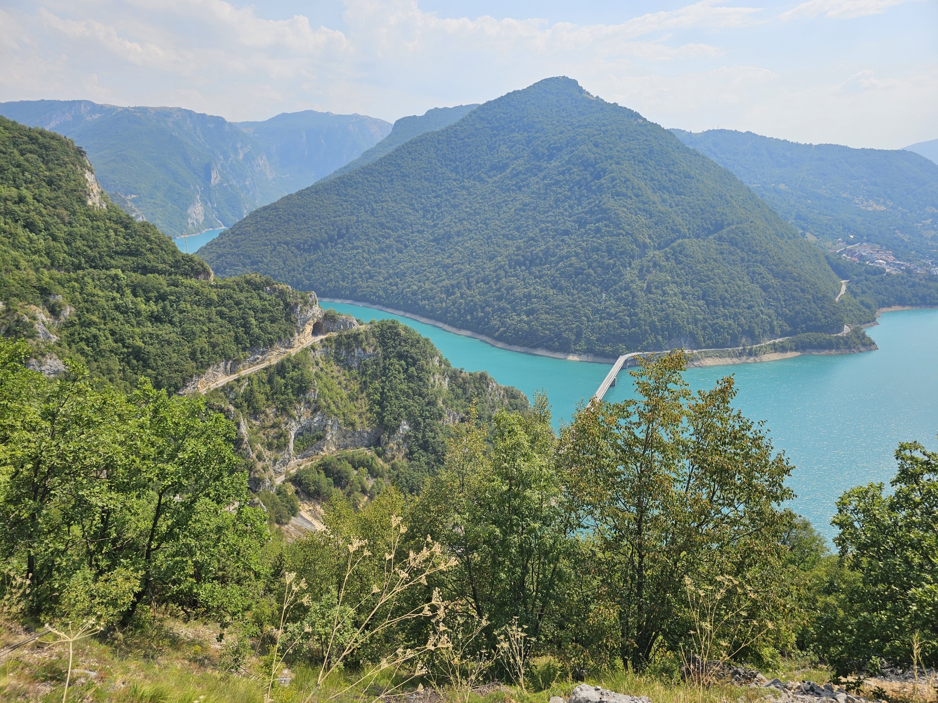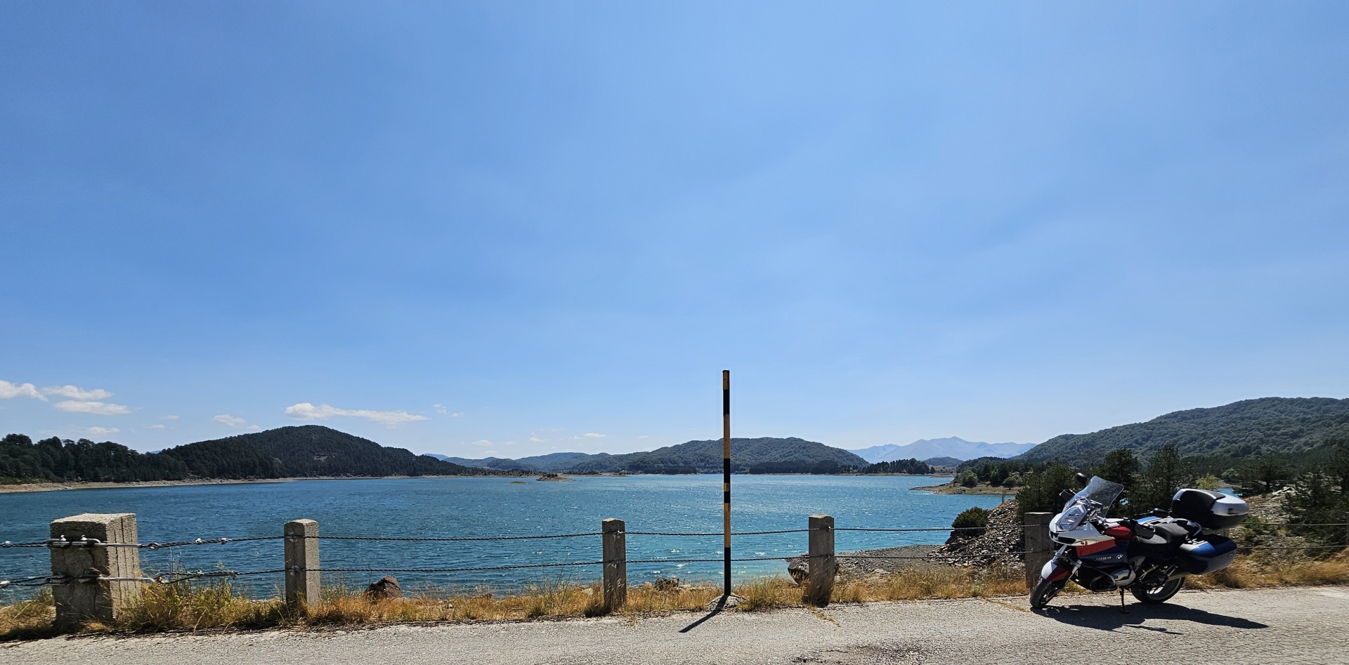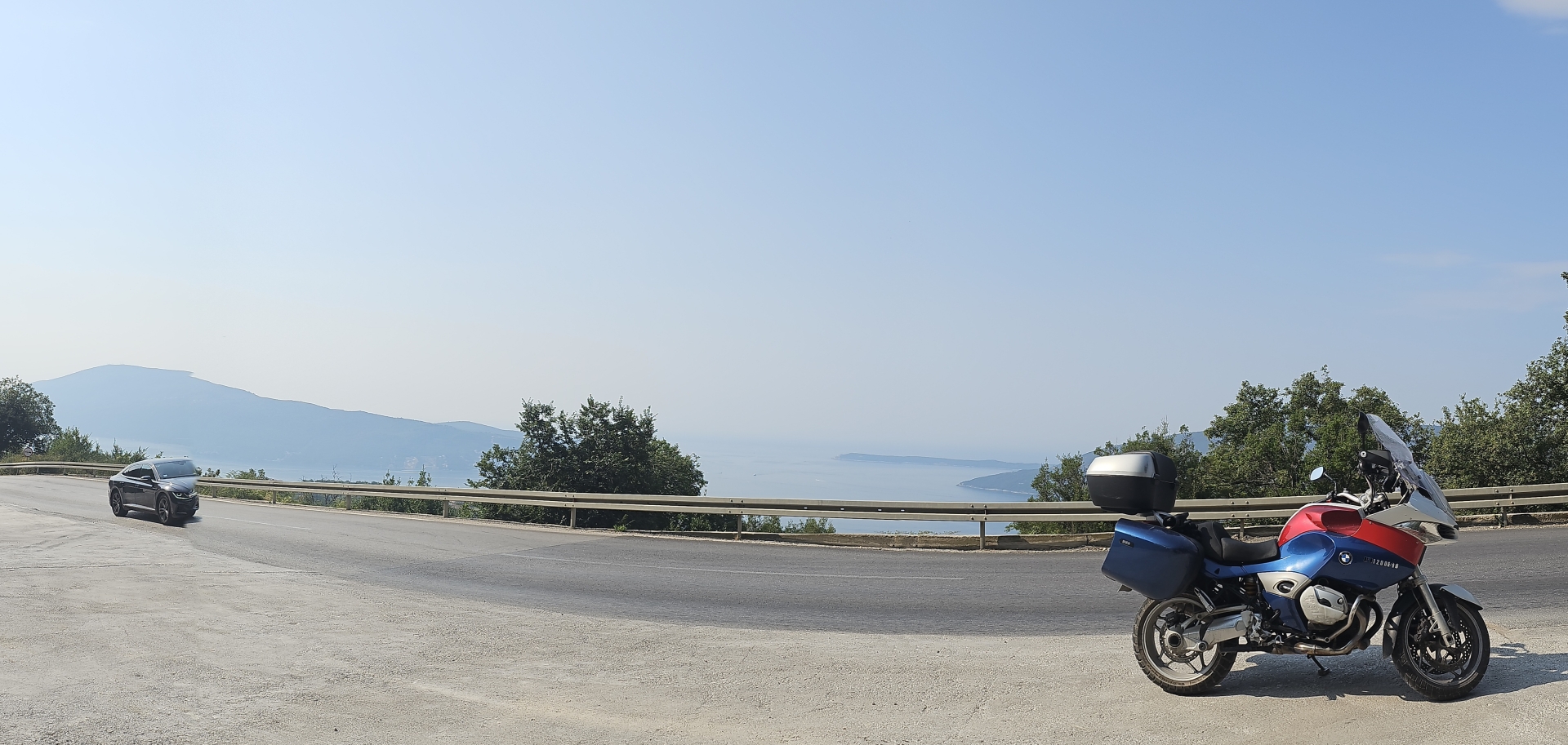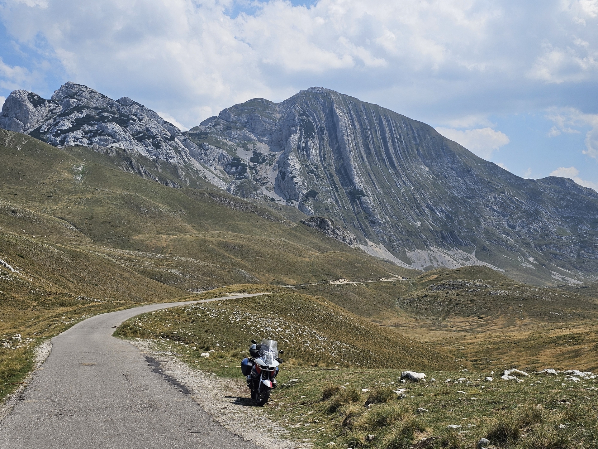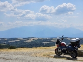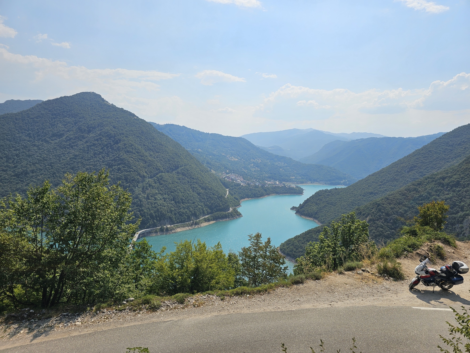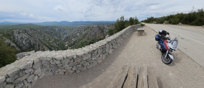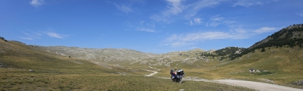 Nejedu na jih přímo, projedu Durmitor a na stejném místě po x-té fotím motorku a Prutaš. Pak už jen výhled na Pivsko jezero a na jih k moři.