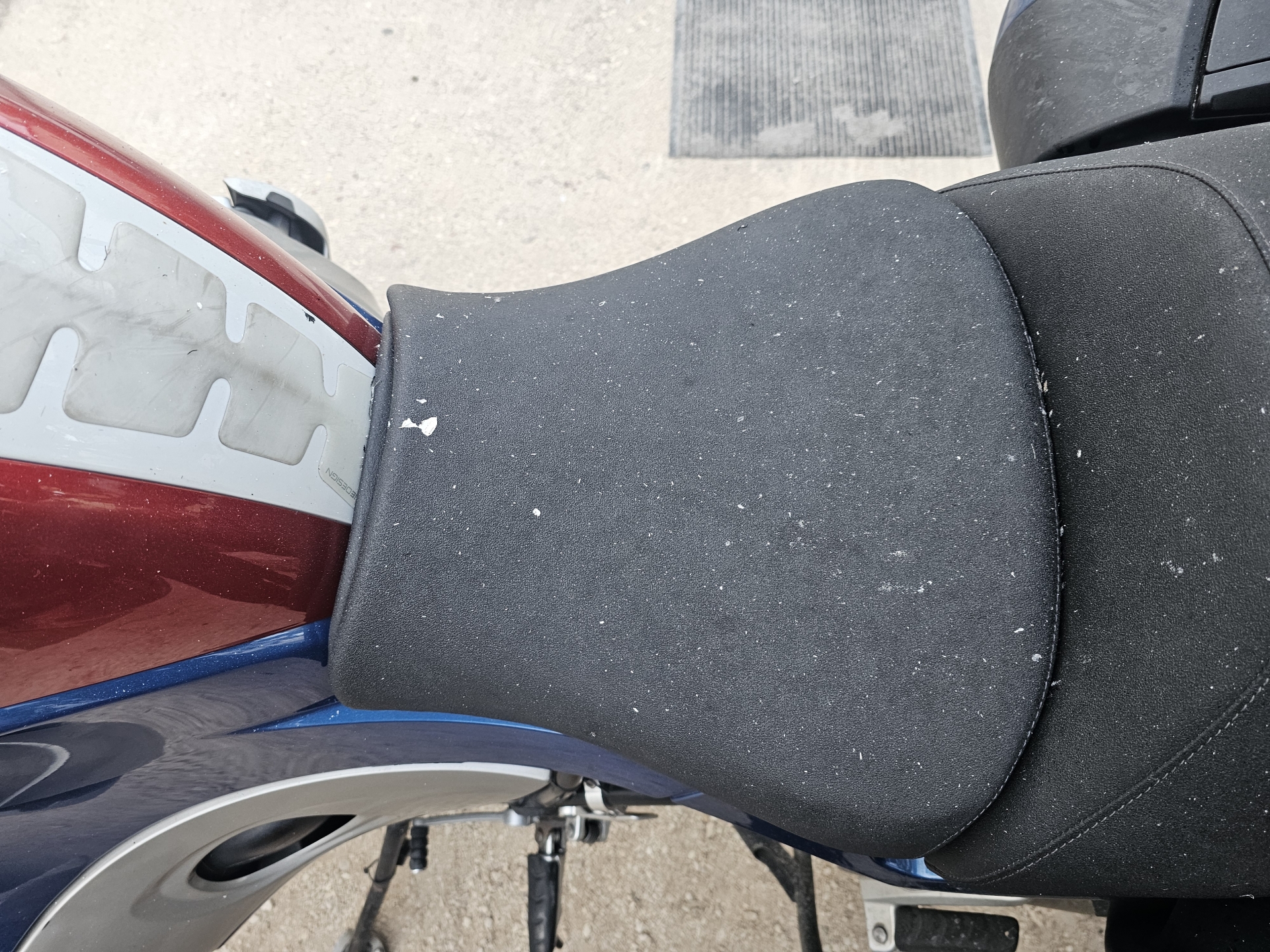 Po noční bouřce ani stopy, mouchy jsou stále na plexi motorky a na zadní sedačce jen pár oček v prachu z několika kapek.