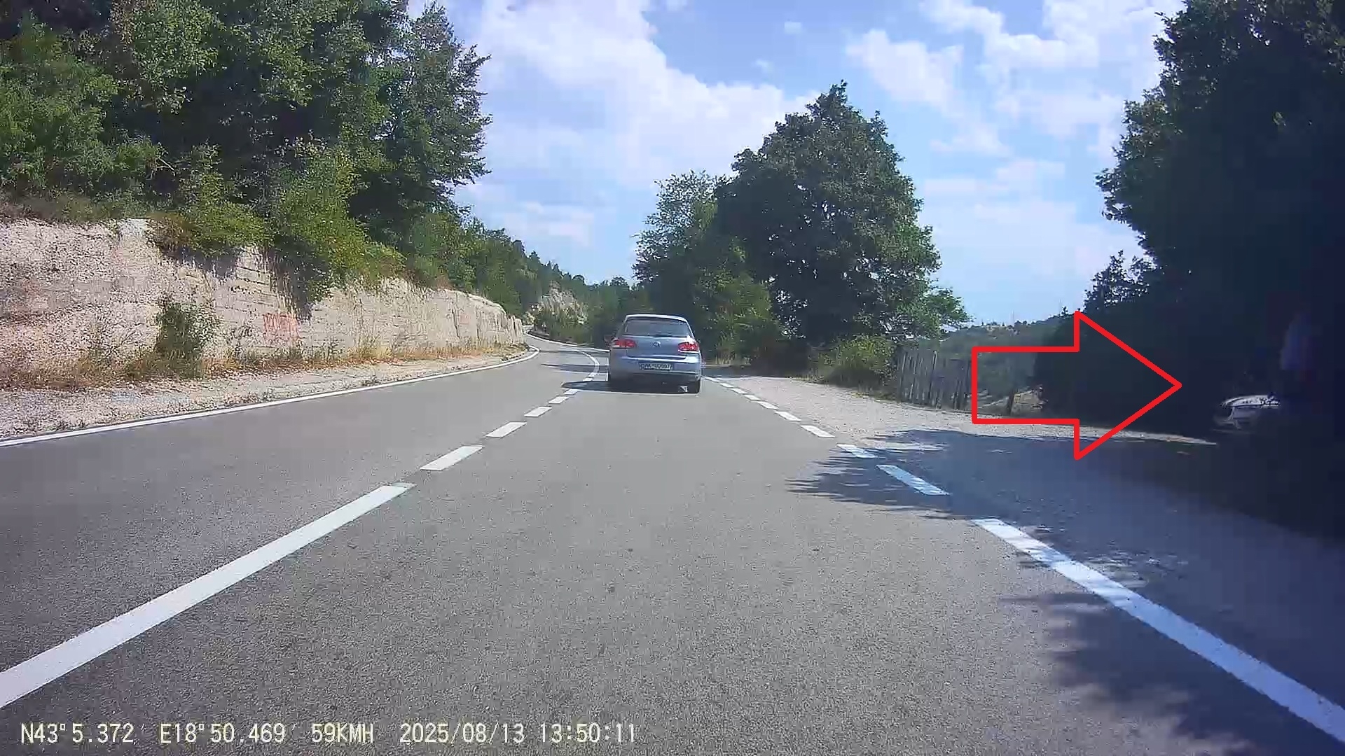 Do údolí k Sarajevu dojedu podezřele kličkující auto, při jednom kontaktu s obrubníkem mu odlétne poklice z kola.