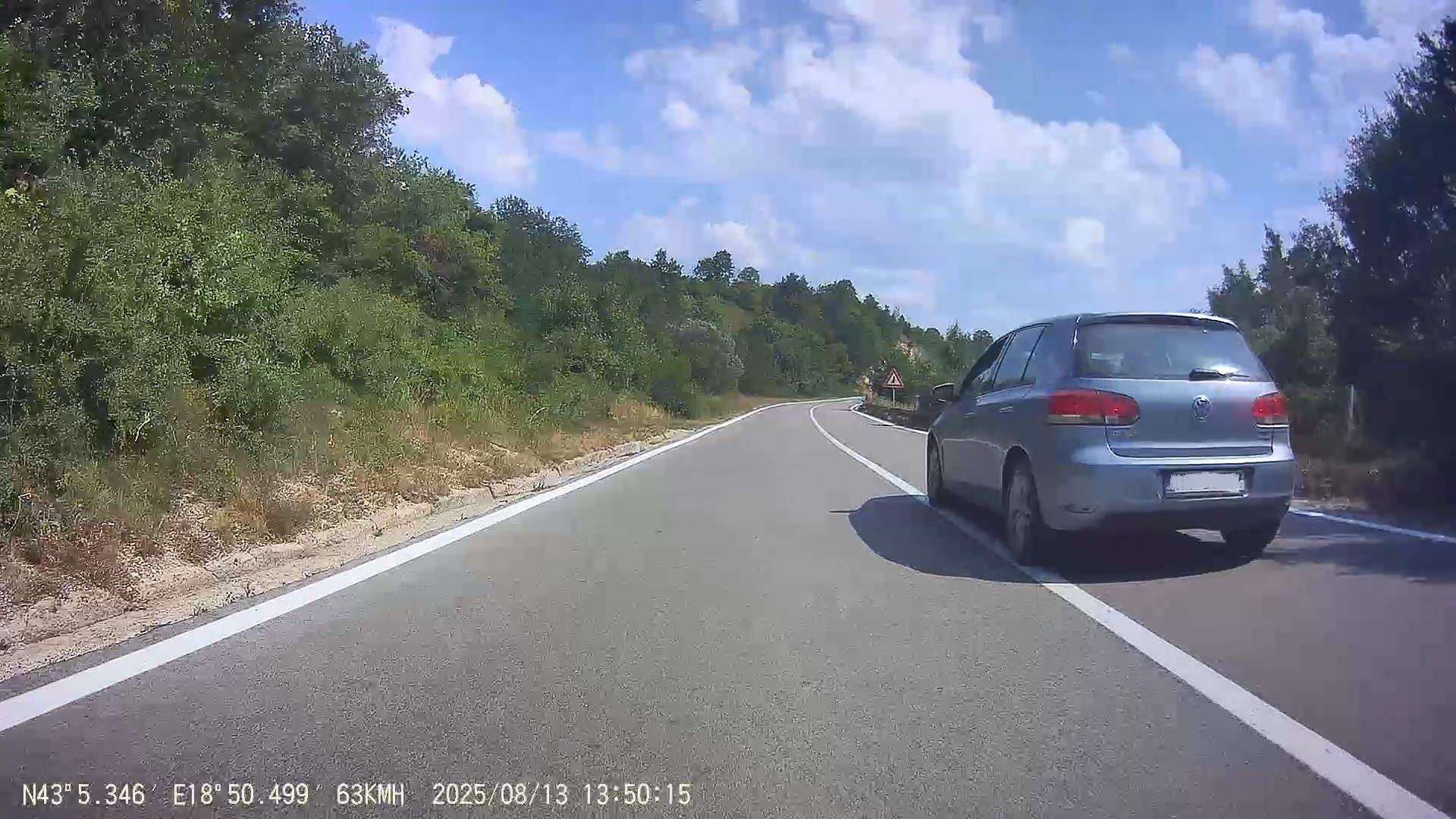 Předjíždím VW Golf přes plnou čáru, slídila ve stínu si nevšimnu ani umně schovaného auta.