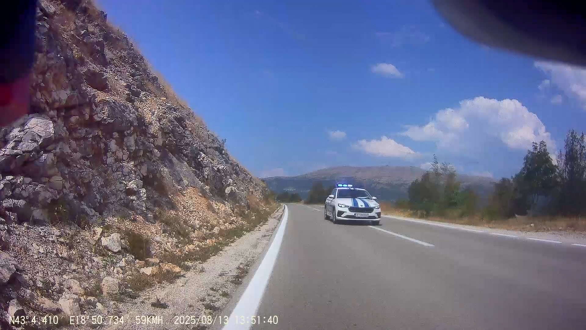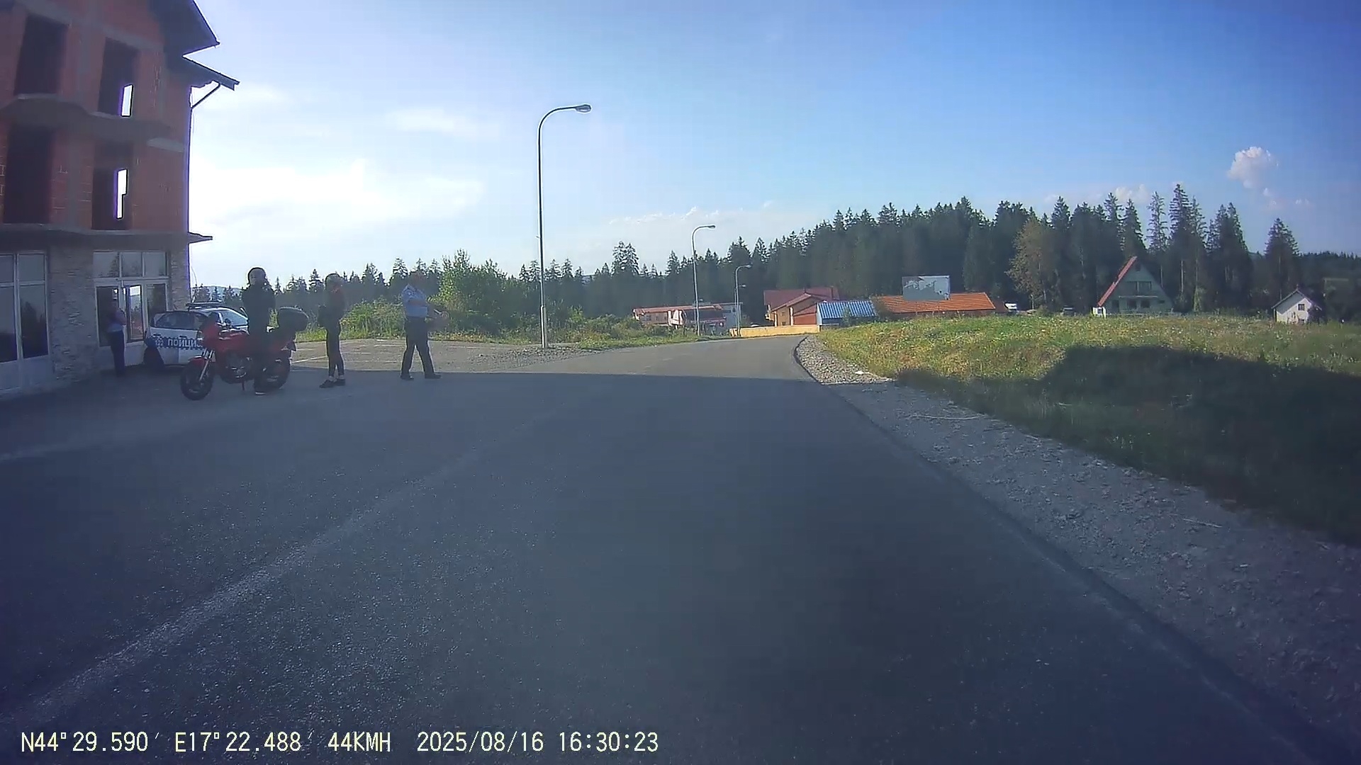 O kousek dál to bylo podobné s polucisty, jeden vystartoval s plackou, aby mě zastavil a druhý jen unuděně zkontroloval řidičský průkaz a nechali mě jet dál.