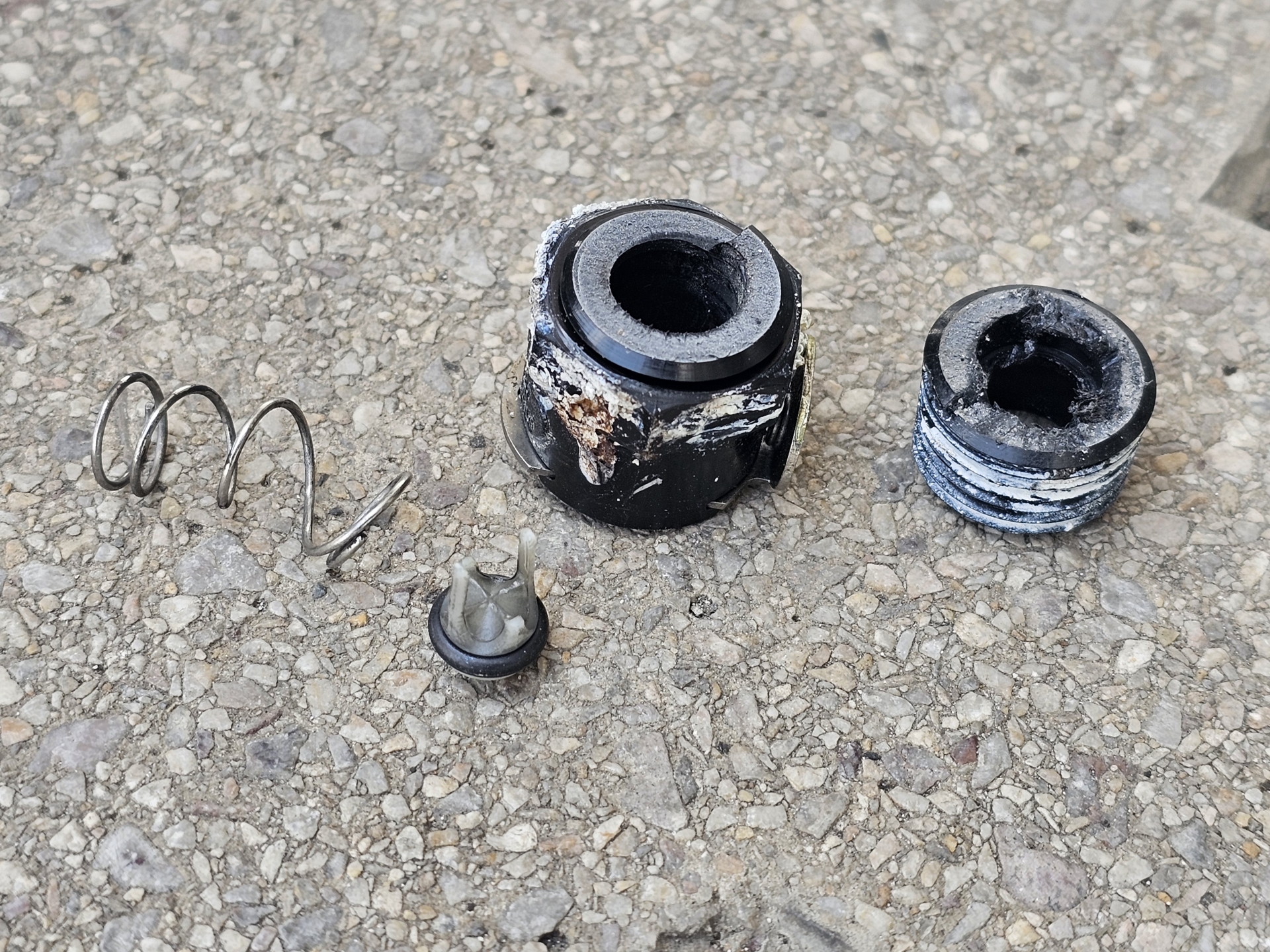 Trvalo to asi půlhodinku, z původní armatury se vrchní část při použití malé síly snadno ulomila, zbytek šel snadno naseknout a vyťukat plochým šroubovákem ven.