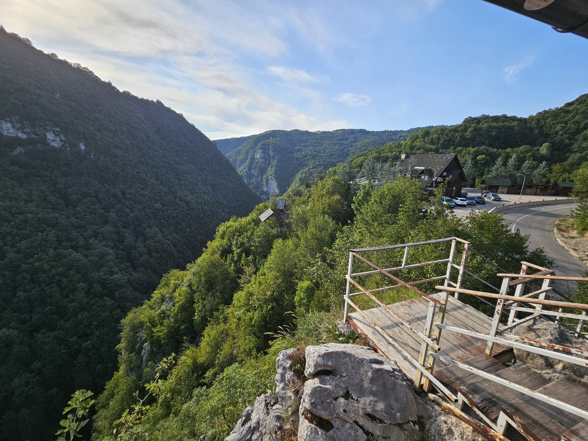 Asfaltová kozí stezka je místy bez svodidel i bez zídky, prostě hrana a pak sráz.
