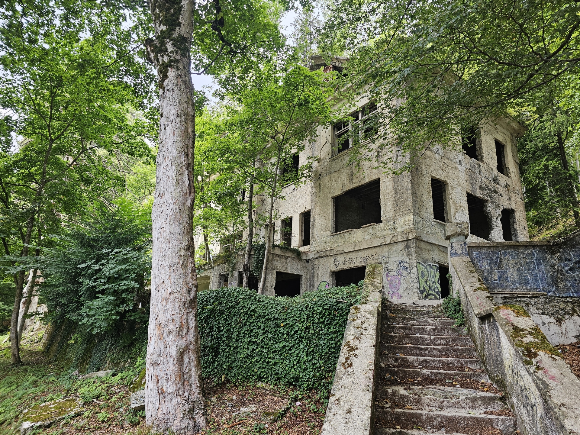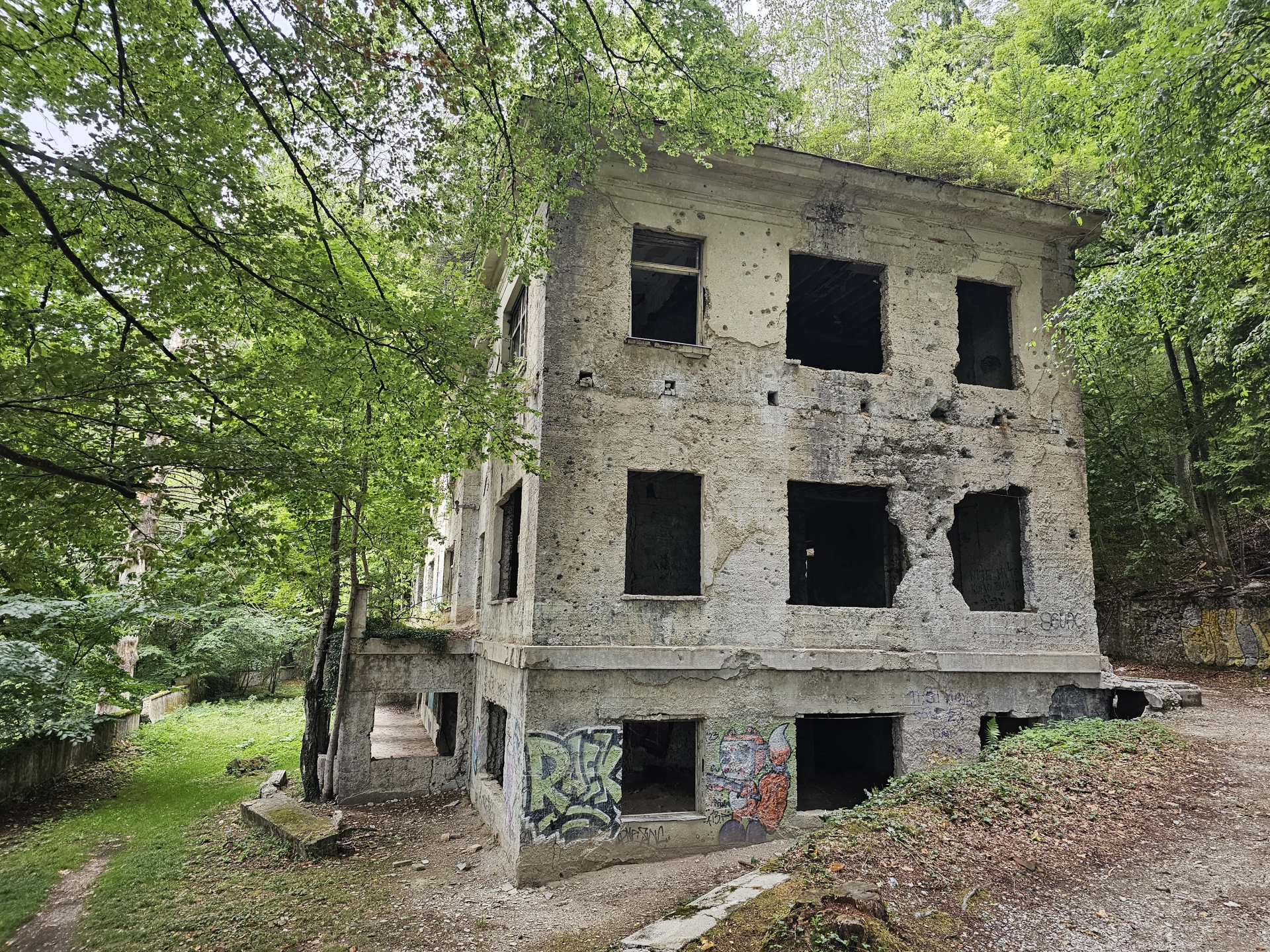 Rozpadající se hotel Igman už znám, z nostalgie udělám jen fotky lyžařských skokanských můstků a bookuju ubytování ve Visoko.