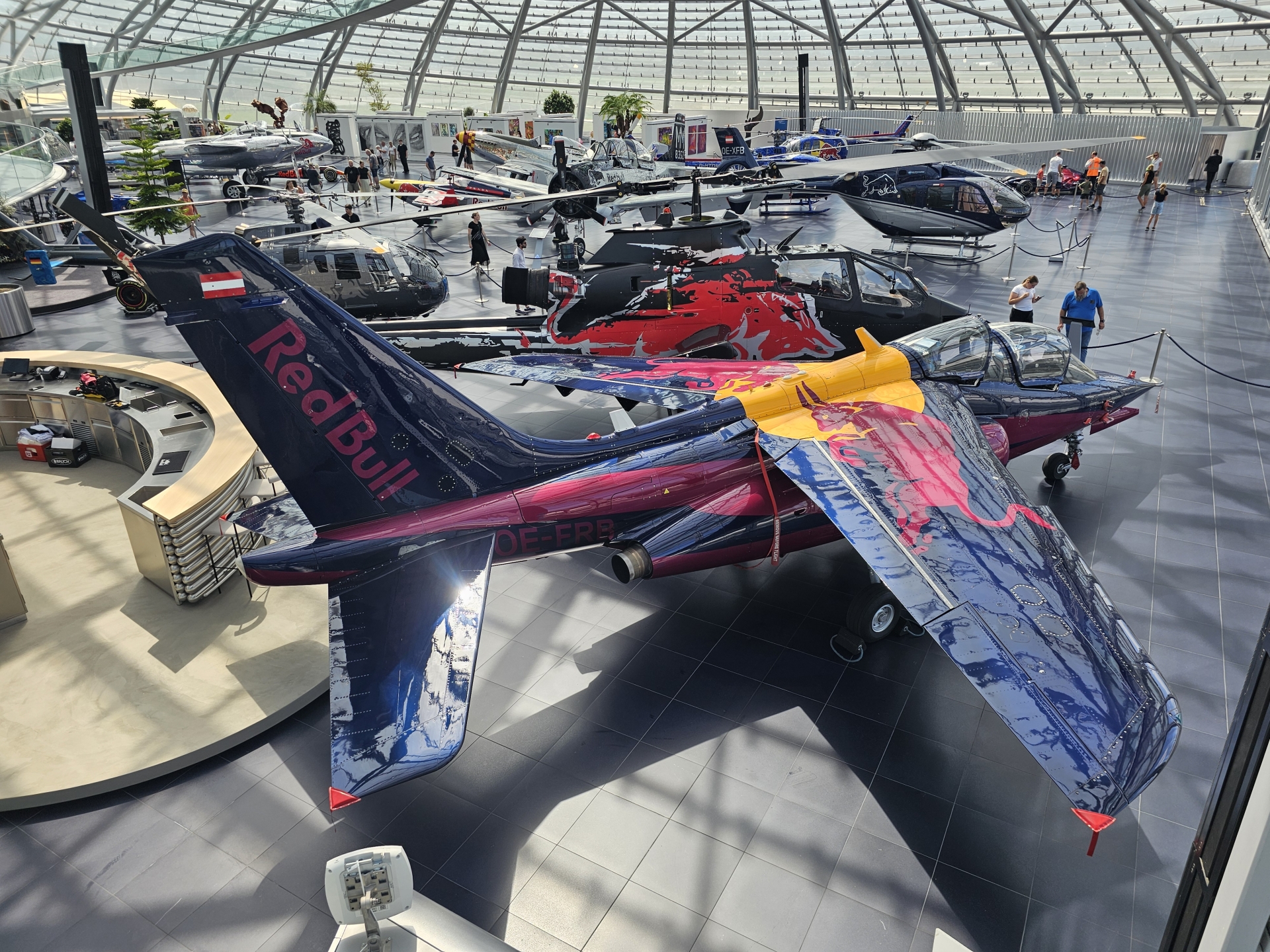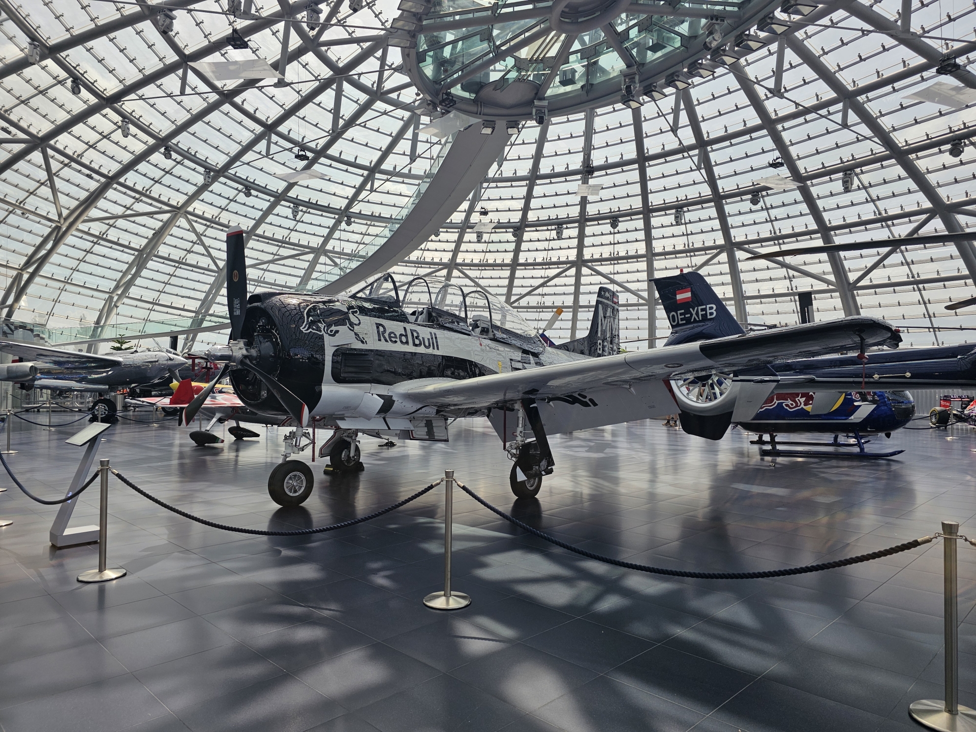V budově Hangar 7 je expozici Red Bull, nevybírají vstupné a obměňují exponáty, vždy je tu něco nového.