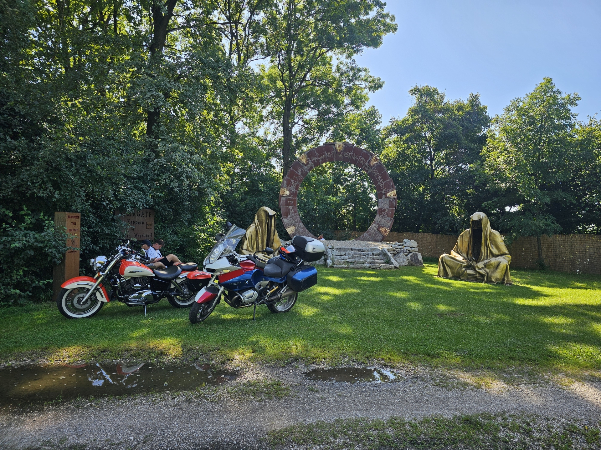 Na okraji města Marchtrenk, na GPS souřadnicích 48.1818617N, 14.1316853E stojí hvězdná brána a dvě sochy strážců času.