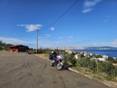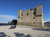 První pamětihodnost a první Hapalainen, u tvrđavy Nehaj nahoře na kačírku foukal vítr tak mocnými poryvy, že nechybělo moc a převrátil motorku na bočáku.