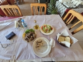 Hotel Monte Rosa v NP Lovčen je jiná liga s recepcí a restaurací, nocleh za €43, teleća juha (polévka) by nasytila i bez dalšího chodu večeře, telecí játra skvěle připravená.