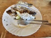 Nocleh v Novi Vinodolski na kraji města jen na přespání €90 (postel v hostelu ve společném pokoji by byla za €60), ryblja juha (rybí polévka) byla jen teplá voda s odérem ryby.