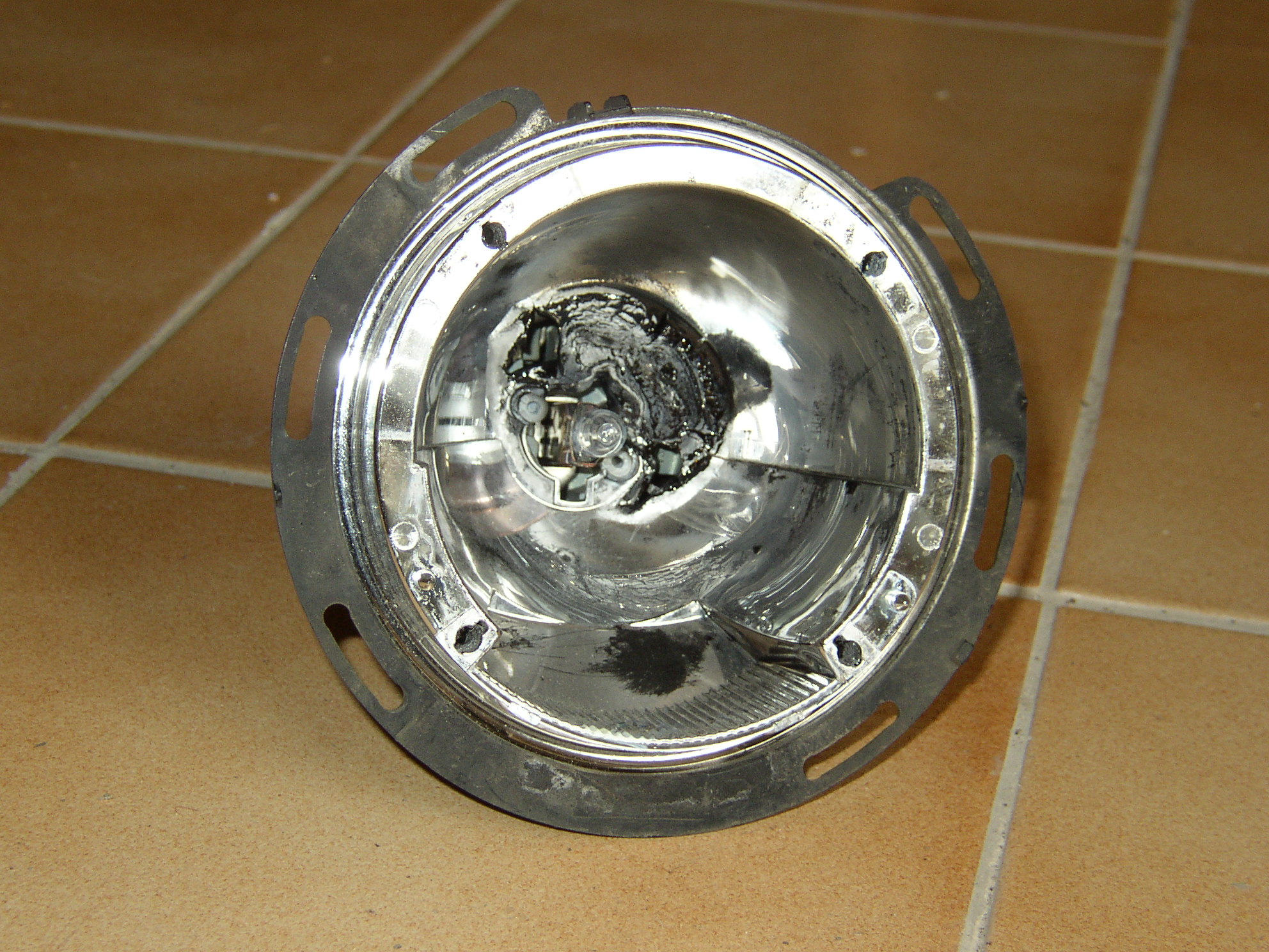 napadeno kutilem v osobě předchozího majitele, 100W halogenová H1 neudělala dobře plastovému zrcadlu projektorového světlometu Hella